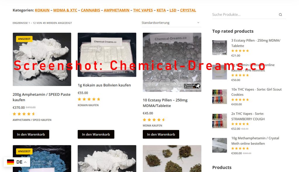 Chemical Dreams ist derzeit einer der führenden Darknet Marktplätze. Er bietet eine benutzerfreundliche Oberfläche, eine große Produktpalette und schnelle Lieferzeiten, vor allem aus Deutschland.